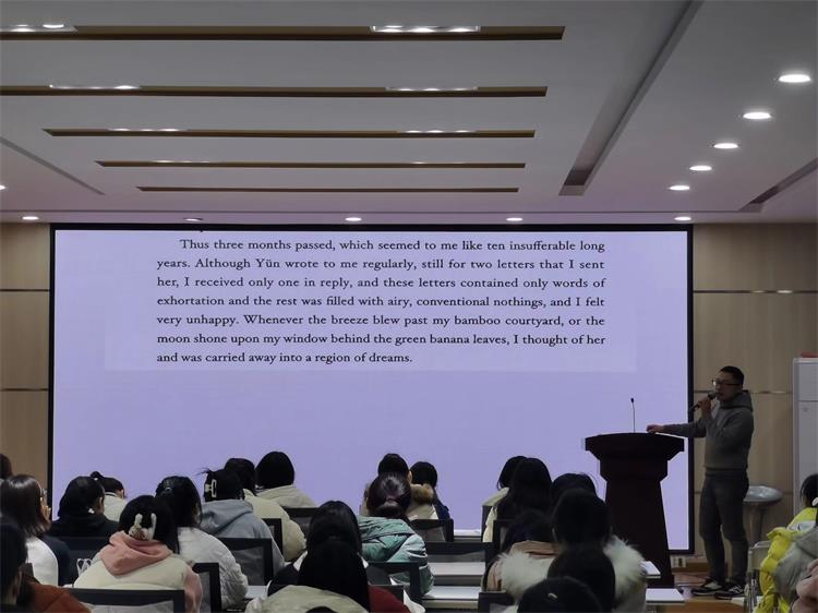 12月12日上午,乐天使体育官网开展21级学生读书会系列活动第二期,分享英译本《浮生六记》(林语堂译)。读书会由乐天使体育官网教工第一党支部书记郭飞老师主讲,近百名21级乐天使体育官网学生参加。